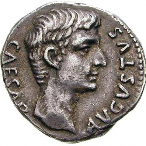| Аверс | CAESAR AVGVSTVS — обнаженная голова Августа вправо. |