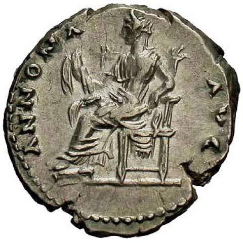 | Реверс | ANNONA AVG. — Аннона (Урожай) сидит влево одной рукой опирается на трон другой приподнимает драпировку. |