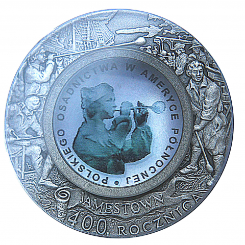 Надпись: POLSKIEGO OSADNICYWA W AMERYCE POŁNOCNEJ JAMESTOWN 400. ROCZNICA