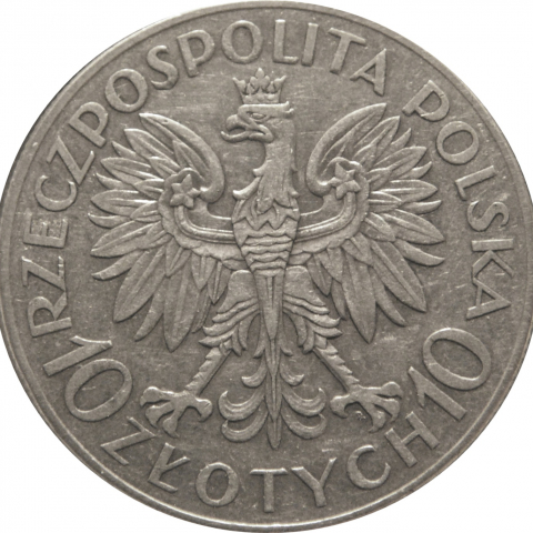 Надпись: RZECZPOSPOLITA POLSKA 10 ZŁOTYCH 10