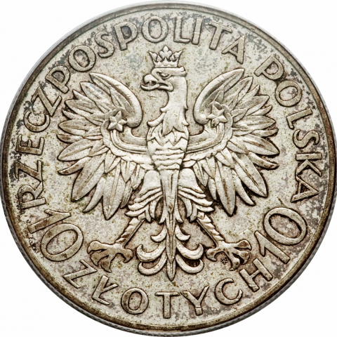 Надпись: RZECZPOSPOLITA POLSKA 10 ZŁOTYCH 10