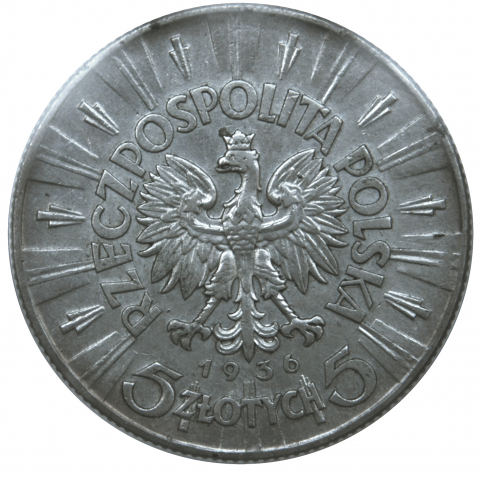 Надпись: RZECZPOSPOLITA POLSKA 1936 5 ZŁOTYCH 5