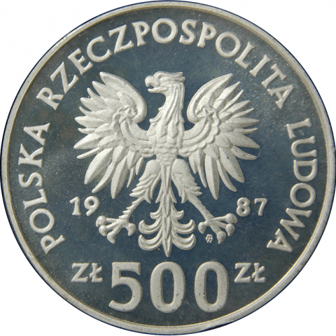 Надпись: POSLKA RZECZPOSPOLITA LUDOWA 19 87 Zł 500 Zł