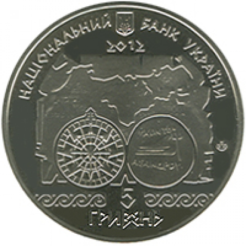 На аверсе монеты вверху размещен малый Государственный Герб Украины, стилизованная надпись полукругом НАЦИОНАЛЬНЫЙ БАНК УКРАИНЫ, под которым год чеканки монеты - 2012, на фоне стилизованной карты изображены слева розу ветров как символ морских странствий и справа античную монету Боспорского царства, в нижней части - меандровий лента, номинал - 5 / ГРИВЕН и логотип Монетного двора Национального банка Украины.