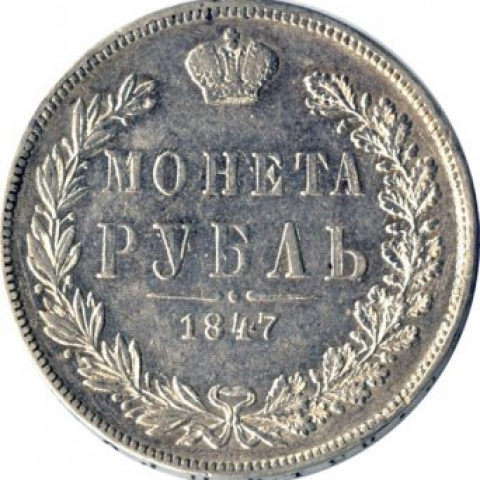 1 рубль 1847 года (Орел Варшава 1842. 14 звеньев в венке)